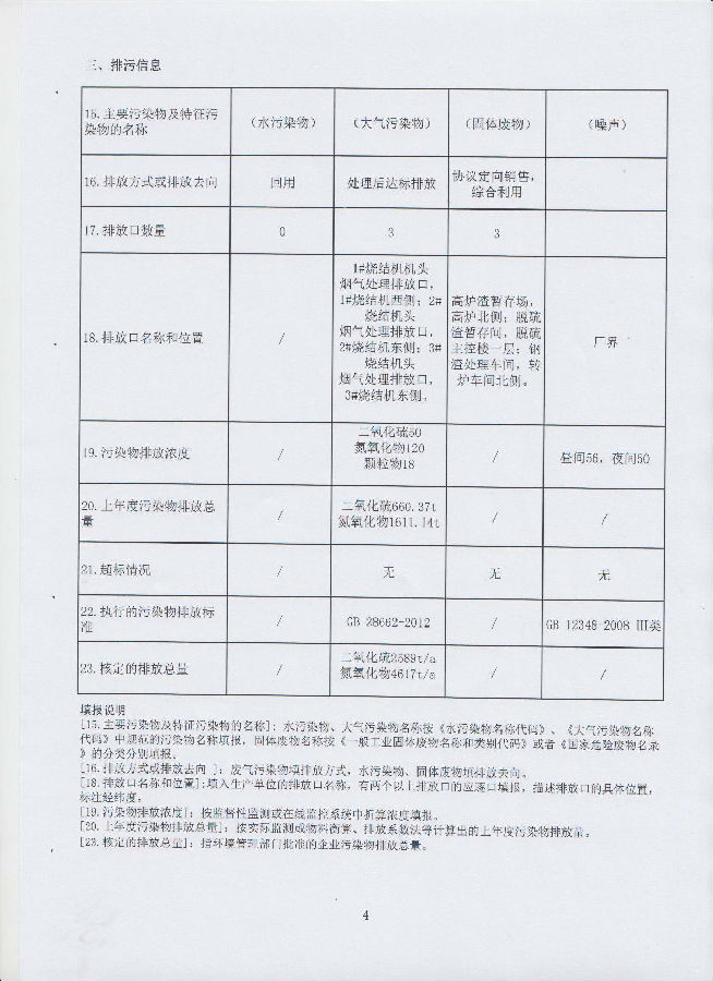赤峰市重点排污单位环境信息公开表