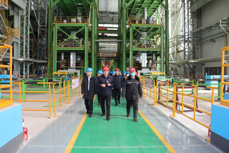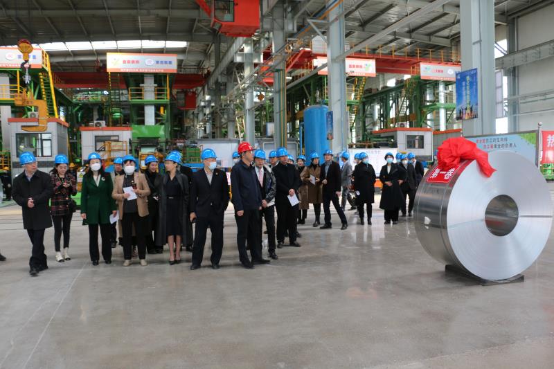 考察团一行参观了我公司新建年产200万吨冷轧、镀锌项目,在刘欣书记的引导下,各位委员先后参观了原料库、酸轧车间、镀锌车间、成品库,了解了黑色的热轧带钢是如何经过酸洗、冷轧、镀锌蜕变为光亮的镀锌带钢整体生产工艺。